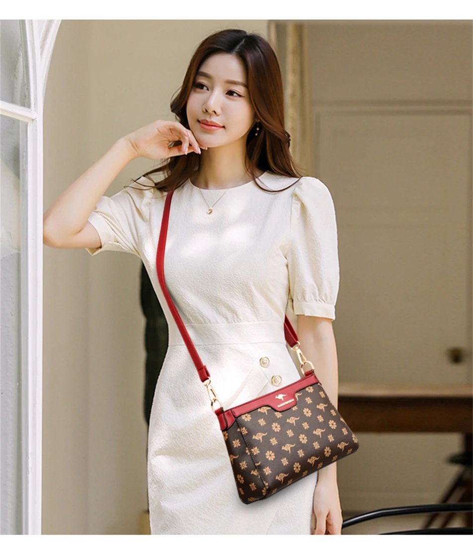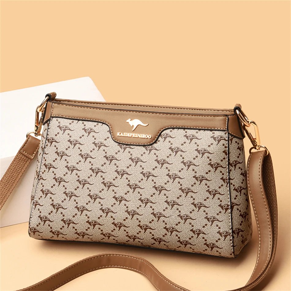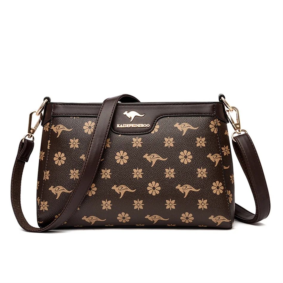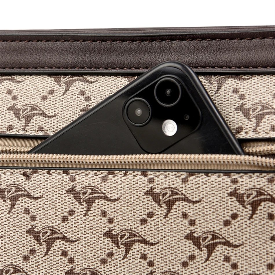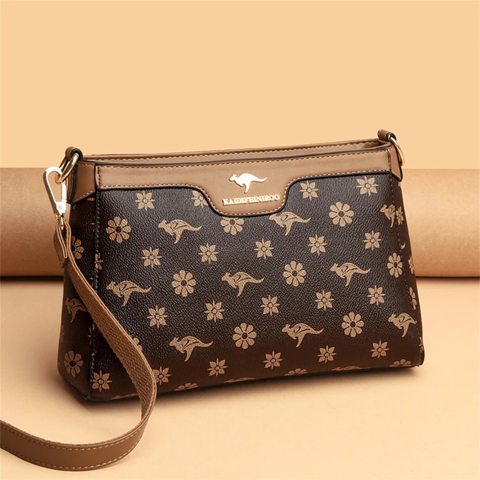 กระเป๋าสะพายข้างใบนี้ผลิตจากหนัง PVC คุณภาพสูง พร้อมลายตารางเพชรและลายพิมพ์จิงโจ้และดอกไม้ที่เป็นเอกลักษณ์ ดีไซน์ Flap ที่ทันสมัยและใช้งานง่าย มีขนาด 26.5 x 18 x 9 ซม. ภายในมีช่องซิป ช่องสำหรับโทรศัพท์มือถือ และช่องแบ่งต่างๆ ช่วยให้คุณจัดเก็บสิ่งของได้อย่างเป็นระเบียบเรียบร้อย ตัวกระเป๋าปิดด้วยซิปและสายยูเพื่อความปลอดภัยของสิ่งของ มาพร้อมสายสะพายสองเส้น เพื่อการปรับเปลี่ยนสไตล์การสะพายให้เข้ากับโอกาสต่างๆ กระเป๋าใบนี้เหมาะสำหรับผู้หญิงที่ต้องการกระเป๋าที่ผสมผสานระหว่างแฟชั่น ความสะดวกสบาย และความสง่างาม