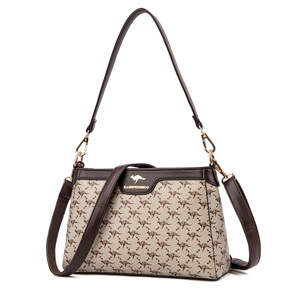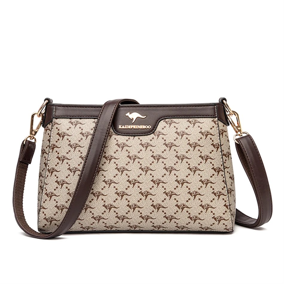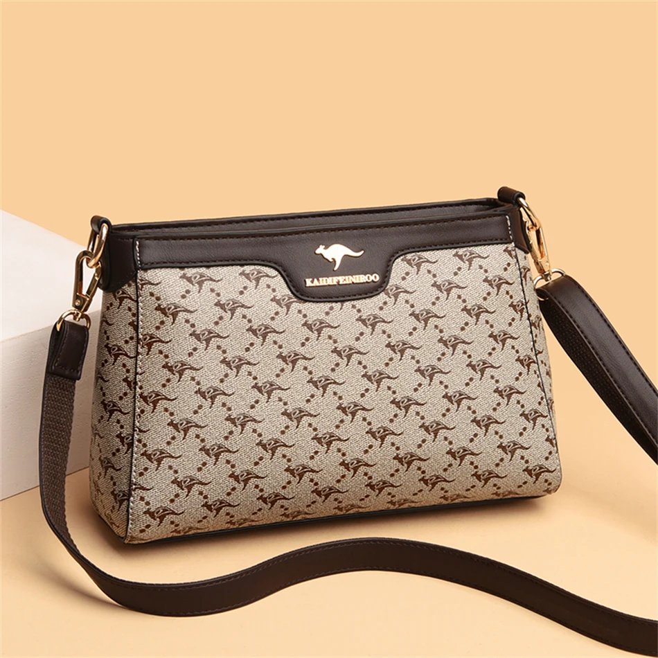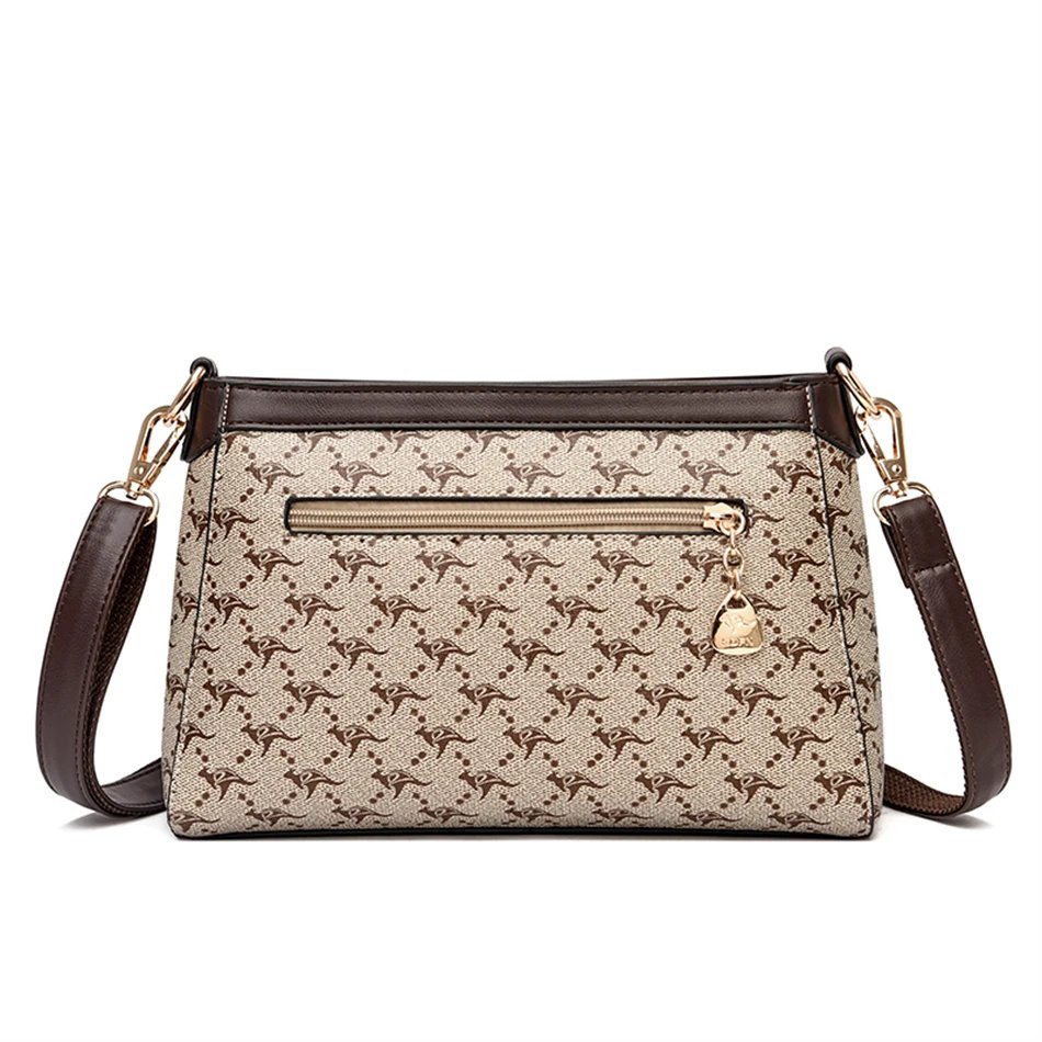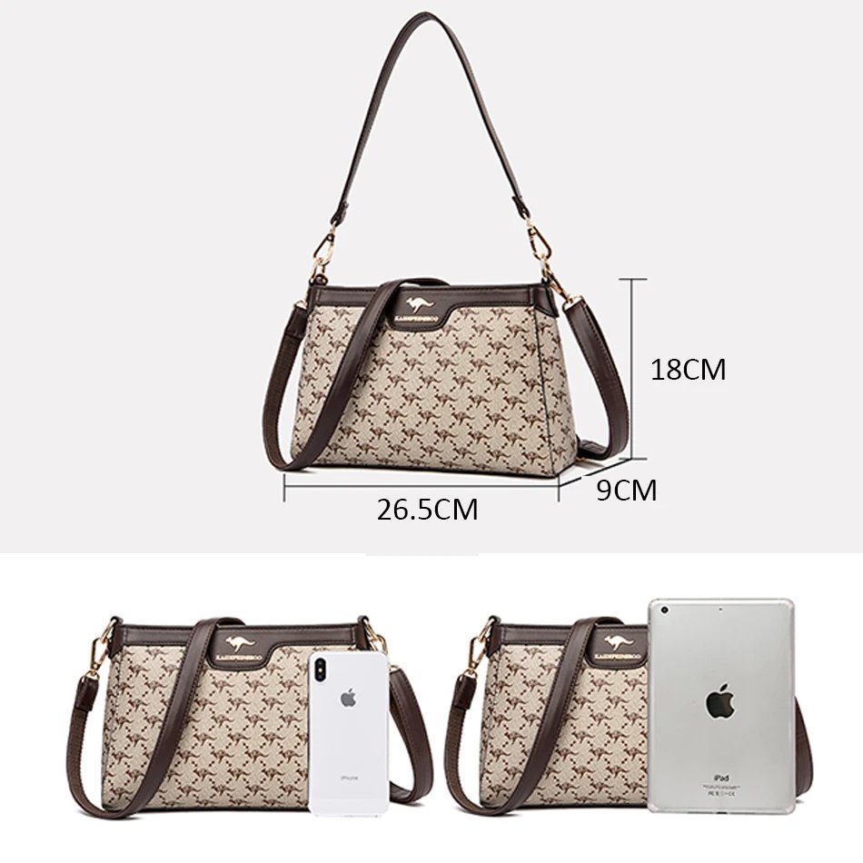 กระเป๋าสะพายข้างใบนี้ผลิตจากหนัง PVC คุณภาพสูง พร้อมลายตารางเพชรและลายพิมพ์จิงโจ้และดอกไม้ที่เป็นเอกลักษณ์ ดีไซน์ Flap ที่ทันสมัยและใช้งานง่าย มีขนาด 26.5 x 18 x 9 ซม. ภายในมีช่องซิป ช่องสำหรับโทรศัพท์มือถือ และช่องแบ่งต่างๆ ช่วยให้คุณจัดเก็บสิ่งของได้อย่างเป็นระเบียบเรียบร้อย ตัวกระเป๋าปิดด้วยซิปและสายยูเพื่อความปลอดภัยของสิ่งของ มาพร้อมสายสะพายสองเส้น เพื่อการปรับเปลี่ยนสไตล์การสะพายให้เข้ากับโอกาสต่างๆ กระเป๋าใบนี้เหมาะสำหรับผู้หญิงที่ต้องการกระเป๋าที่ผสมผสานระหว่างแฟชั่น ความสะดวกสบาย และความสง่างาม