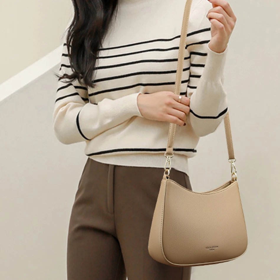 กระเป๋าสะพายข้างดีไซน์เรียบหรู หนังสังเคราะห์คุณภาพสูง ทรง Bucket ใบเดียวครบ จบทุกวัน!
