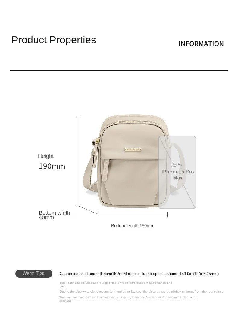 มีน้ำหนักเบาและทนทาน ภายในมีช่องหลักและช่องเสริมสำหรับจัดเก็บโทรศัพท์มือถือ