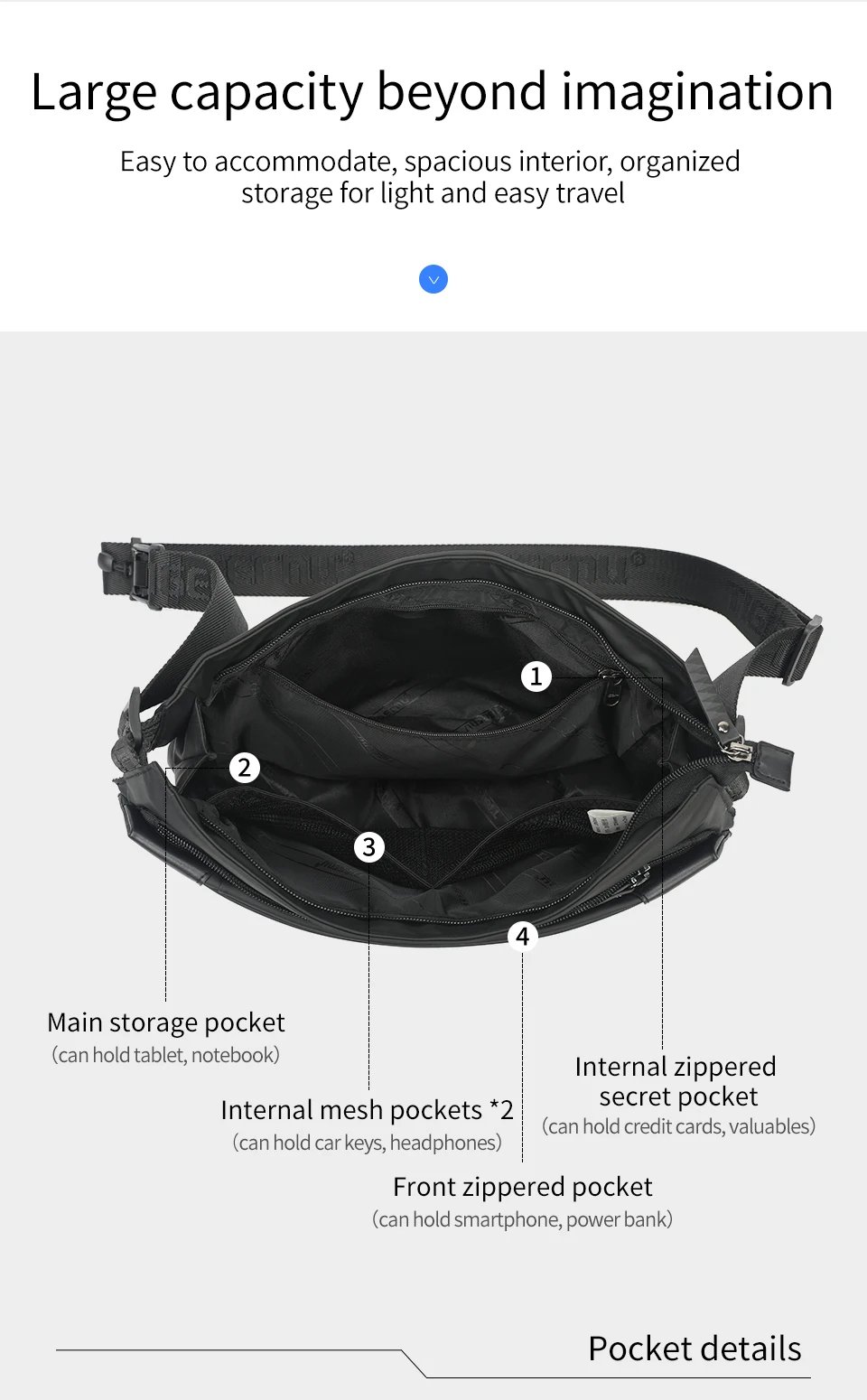 กระเป๋าสะพายข้างดีไซน์สไตล์เกาหลีสุดทันสมัยใบนี้ผลิตจากวัสดุ TPU คุณภาพสูง จึงทนทาน กันน้ำ และไม่ซีดจางง่าย มีน้ำหนักเบาแต่จุของได้เยอะถึง 4.5 ลิตร สามารถใส่ iPad ขนาด 9.7 นิ้วได้อย่างลงตัว มาพร้อมซิปแม่เหล็กและซิปหลังกันขโมย เพิ่มความปลอดภัยให้กับสิ่งของสำคัญของคุณ นอกจากนี้ยังมีการรับประกันซิปตลอดชีพ ทำให้คุณหมดกังวลเรื่องคุณภาพ เหมาะสำหรับการเดินทางท่องเที่ยวหรือใช้งานในชีวิตประจำวัน ที่ต้องการความสะดวกสบายและสไตล์ที่โดดเด่น