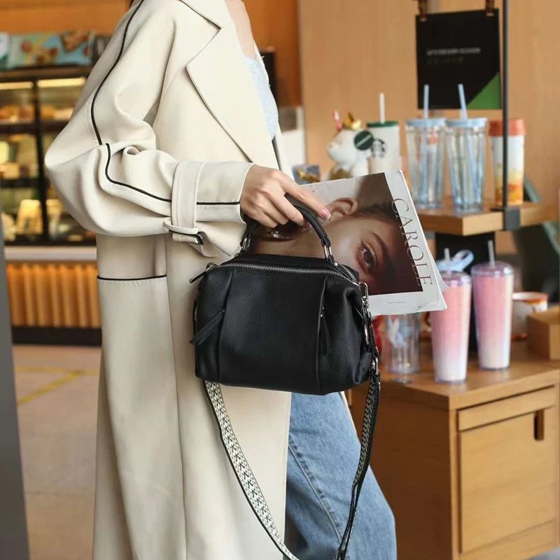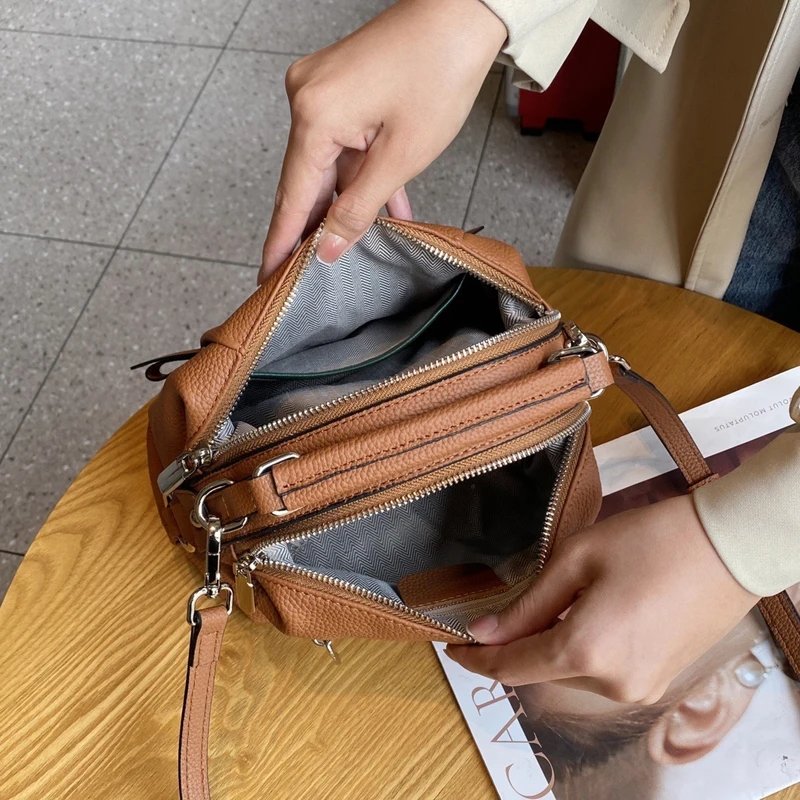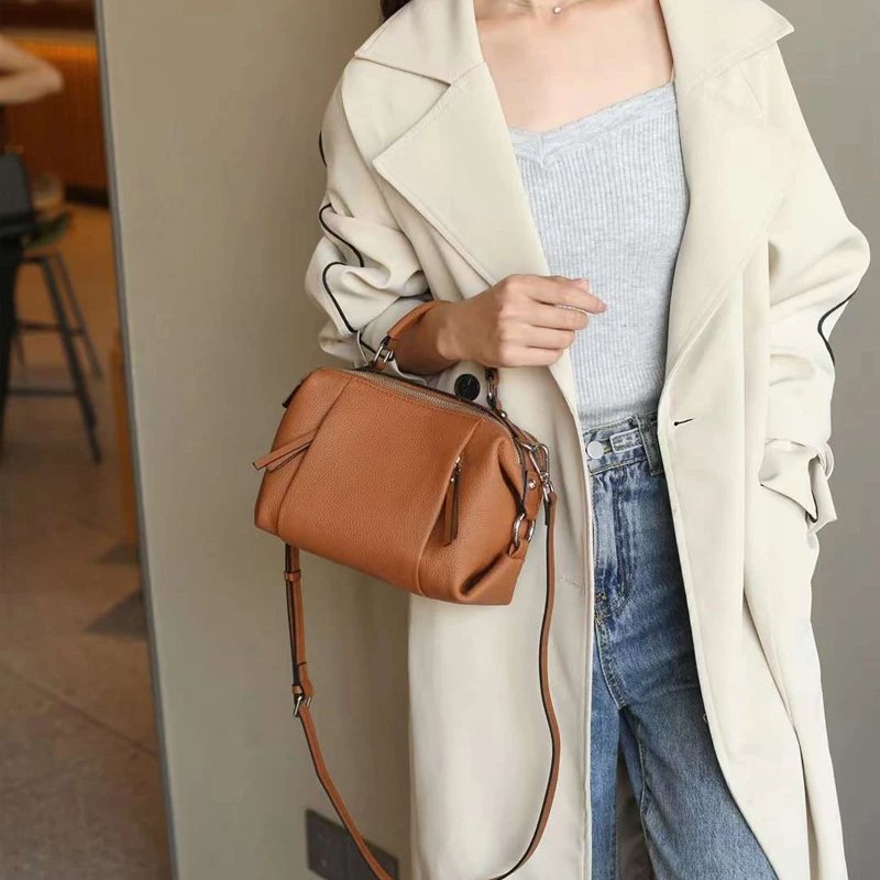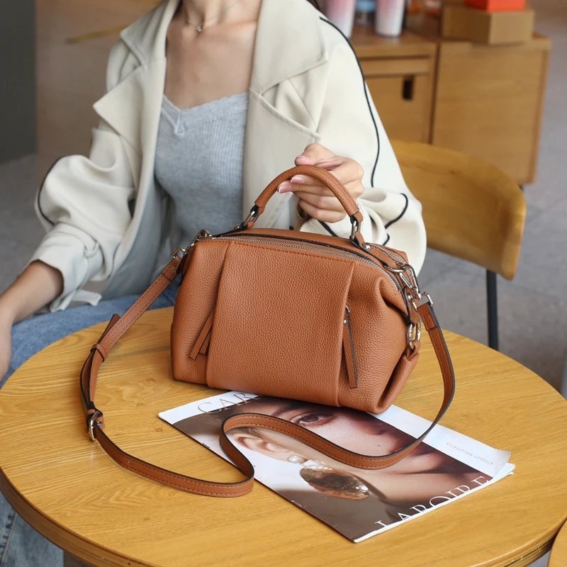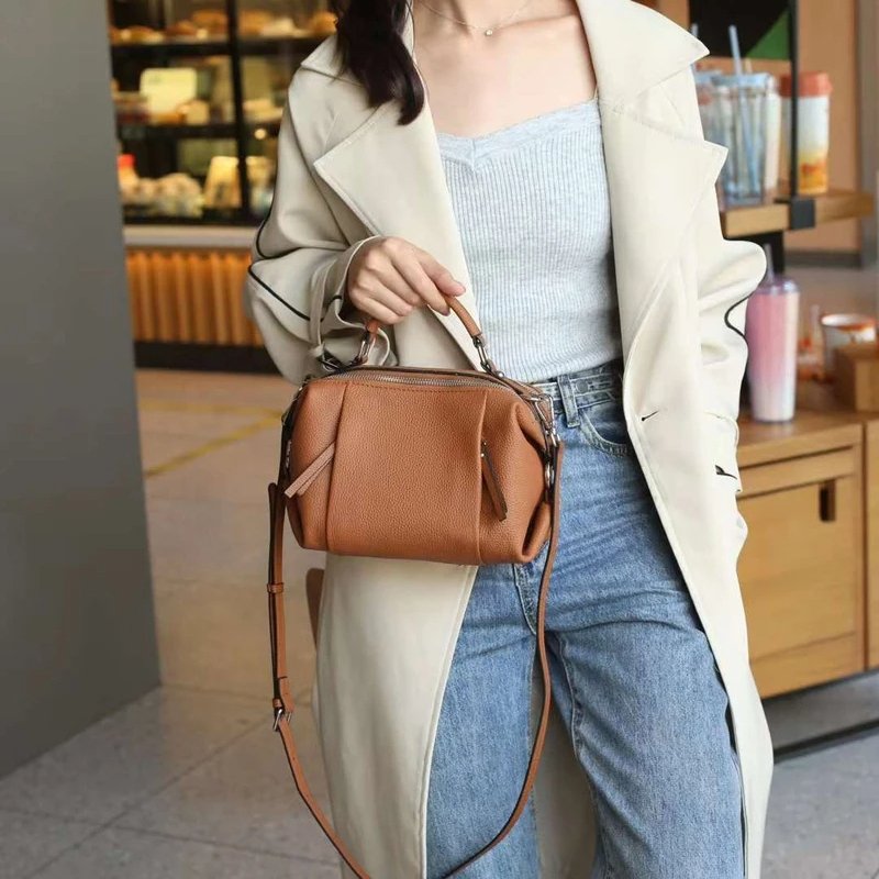 กระเป๋าสะพายข้าง ZUEZAN ใบนี้ผลิตจากหนังวัวแท้ 100% คุณภาพพรีเมียม ให้สัมผัสที่นุ่มนวลและทนทาน ดีไซน์ทรง Boston ที่เป็นเอกลักษณ์และดูดีมีสไตล์ ขนาดพอเหมาะ พร้อมซิป 2 ช่องเพื่อความปลอดภัยของสิ่งของ ภายในมีช่องสำหรับโทรศัพท์มือถือและช่องซิป ช่วยให้คุณจัดเก็บของใช้จำเป็นได้อย่างเป็นระเบียบ กระเป๋าใบนี้มาพร้อมสายสะพาย 2 เส้น ให้คุณเลือกปรับใช้ได้หลากหลาย ทั้งแบบสะพายไหล่หรือสะพายข้าง เหมาะสำหรับทุกโอกาส ไม่ว่าจะไปปาร์ตี้หรือใช้ในชีวิตประจำวัน