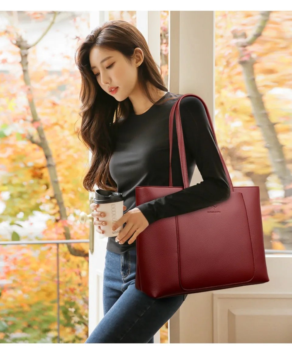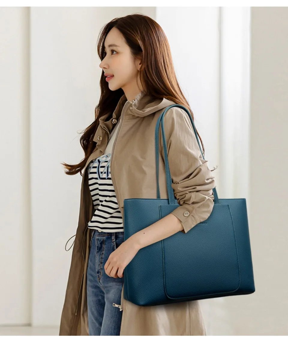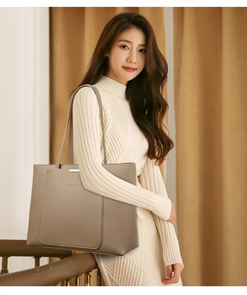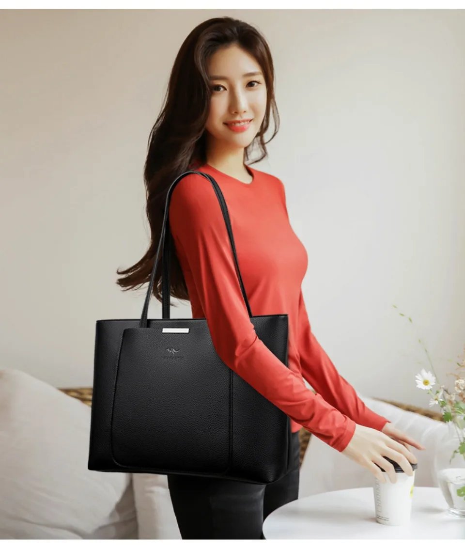 กระเป๋าโท้ทหนัง PU ดีไซน์เรียบหรู ความจุใหญ่ ตอบโจทย์ทุกวันทำงานและการเดินทาง!