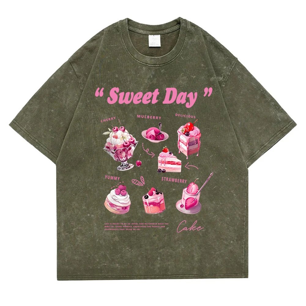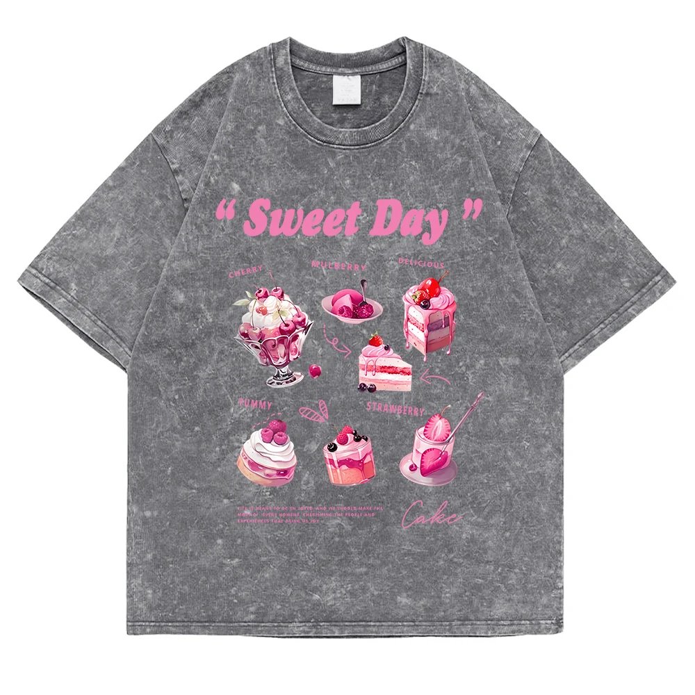 เสื้อยืดสไตล์วินเทจผ้าฝ้าย 100% พิมพ์ลายเค้กหิมะน่ารัก สวมใส่สบาย ระบายอากาศดี เหมาะสำหรับผู้ที่รักความสดใสและเป็นเอกลักษณ์