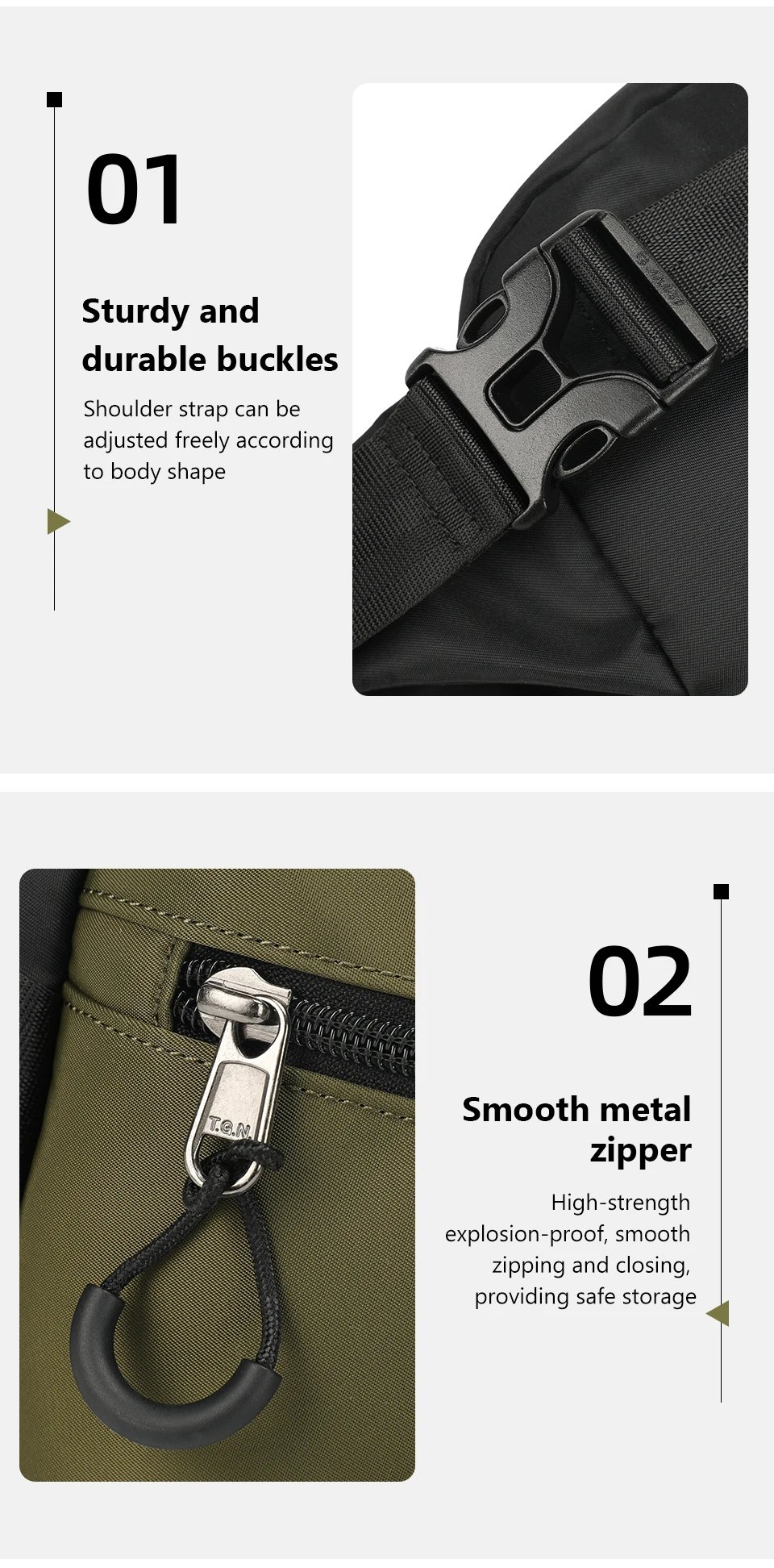 กระเป๋าคาดอกใบนี้ออกแบบมาเพื่อความทนทานและความสะดวกสบายสูงสุด ผลิตจากผ้า composit 900D คุณภาพสูง ที่ทนทานต่อการใช้งานทุกวัน มาพร้อมซิปแบรนด์ที่ติดตั้งอย่างมีนวัตกรรม เพื่อให้ใช้งานง่ายและเพิ่มความทนทาน น้ำหนักเบาเพียง 1.9 ลิตร แต่สามารถใส่ iPad ขนาด 7.9 นิ้วได้อย่างลงตัว ทำให้เหมาะสำหรับการพกพาในทุกสถานการณ์ ไม่ว่าจะเป็นการเดินทาง ทำงาน หรือทำกิจกรรมต่างๆ ด้วยดีไซน์ทันสมัยและตัวเลือก 4 สี กระเป๋าใบนี้จะช่วยเสริมลุคของคุณให้ดูดีมีสไตล์