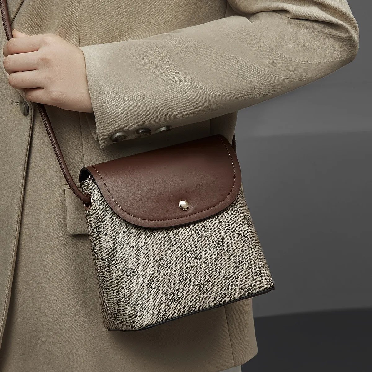 กระเป๋าสะพายข้างดีไซน์คลาสสิก ลวดลายโมโนแกรมวินเทจ เหมาะกับทุกโอกาส มอบความหรูหราและใช้งานง่าย เพิ่มความมั่นใจให้คุณในทุกวัน