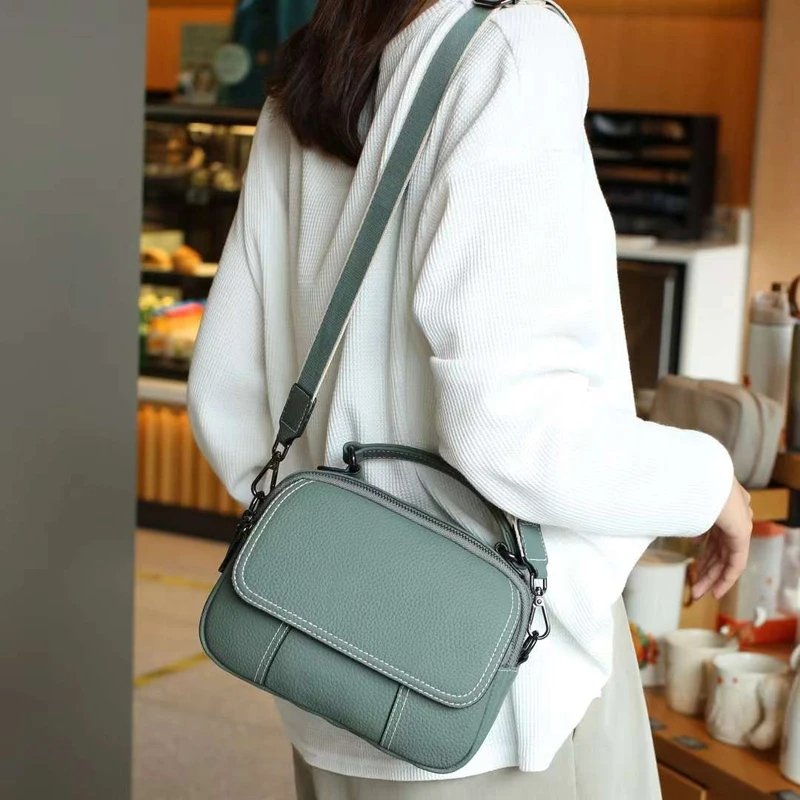 กระเป๋าสะพายข้างหนังวัวแท้ ดีไซน์ Flap ทันสมัย พร้อม 2 สายจุของเยอะ!