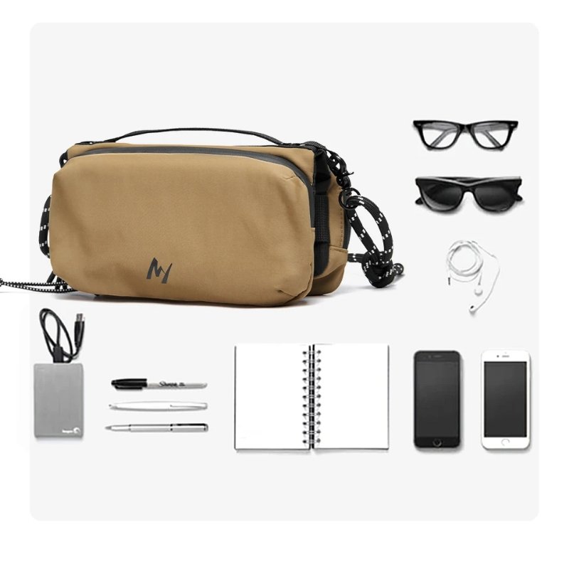 กระเป๋าสะพายข้าง KCE ใบนี้ผลิตจากผ้า Oxford คุณภาพสูง ซึ่งมีคุณสมบัติกันน้ำได้ดีเยี่ยม ช่วยปกป้องสัมภาระของคุณจากละอองน้ำหรือฝนปรอยๆ ตัวกระเป๋ามีดีไซน์แฟชั่นที่ดูดีและทันสมัย เหมาะสำหรับทั้งผู้ชายและผู้หญิงที่ต้องการความคล่องตัวในการใช้งาน กระเป๋ามีความจุสูงพร้อมช่องเก็บของถึง 6 ช่อง ช่วยให้คุณจัดเก็บสิ่งของจำเป็นได้อย่างเป็นระเบียบ ทั้งโทรศัพท์มือถือ แว่นตา แบตสำรอง หรือกุญแจ ด้วยน้ำหนักที่เบาและสายสะพายที่ปรับได้ ทำให้สะพายสบายตลอดวัน ไม่ว่าจะเป็นการเดินทาง ท่องเที่ยว หรือใช้ในชีวิตประจำวัน