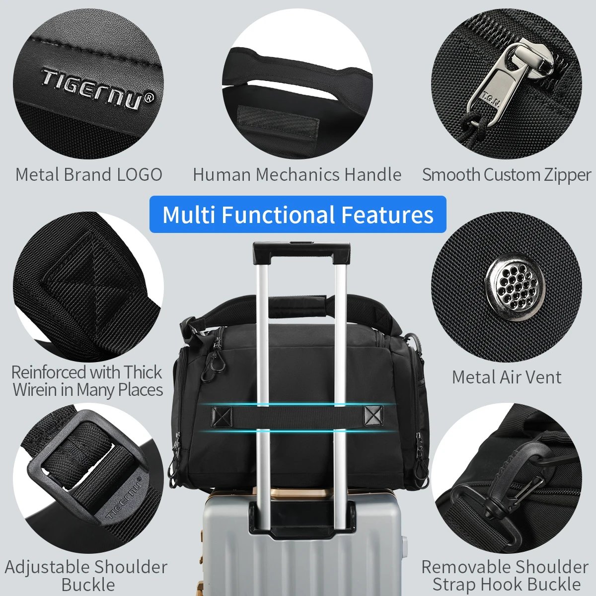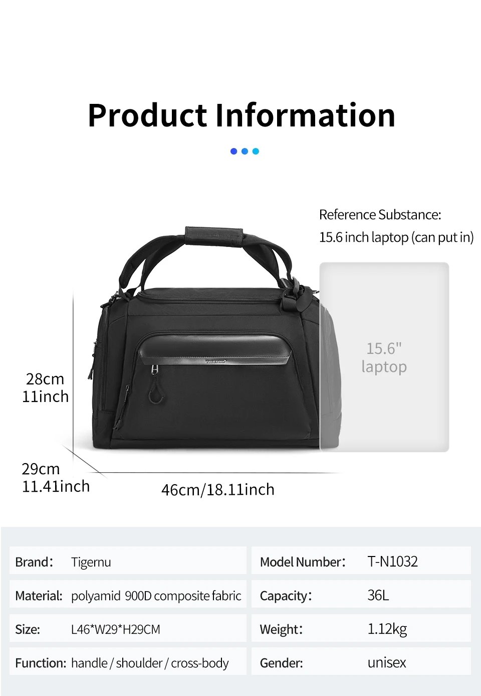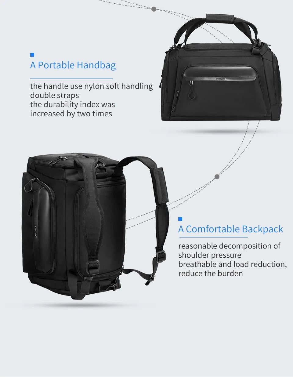 | Features | 900D Nylon Composite Fabric; Brand Suspended Innovative Zipper; Large Capacity; Waterproof; Multiple Wearing Methods |