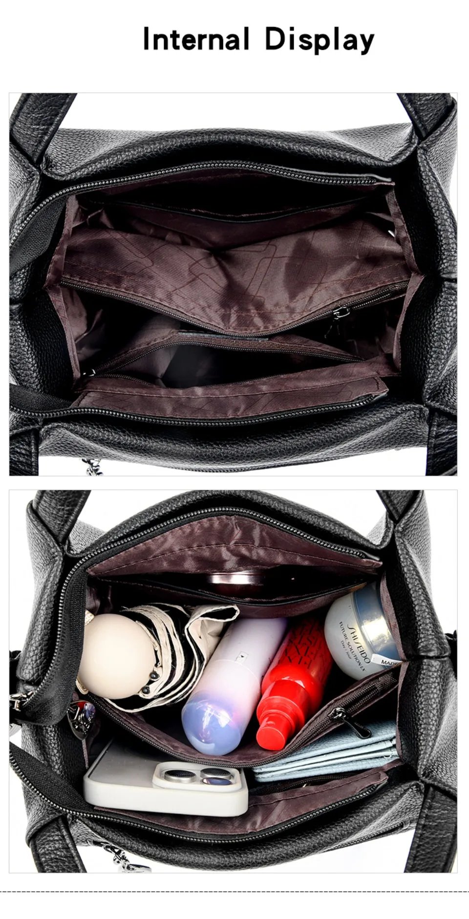 กระเป๋าโท้ท **AMYMANG** ใบนี้ผลิตจากหนัง PU คุณภาพสูง ให้สัมผัสที่นุ่มนวลและทนทาน ดีไซน์ Casual Tote ที่ดูหรูหราและทันสมัย พร้อมการประดับตกแต่งด้วยเลื่อมที่เพิ่มความโดดเด่น ตัวกระเป๋ามีขนาด 23 x 19 x 13 ซม. มีซิปปิดเพื่อความปลอดภัยของสิ่งของ ภายในมีช่องซิป ช่องเปิด และช่องแบ่ง เพื่อการจัดเก็บที่เป็นระเบียบเรียบร้อย นอกจากนี้ยังมีช่องกระเป๋าภายนอกเพิ่มเติมเพื่อความสะดวกในการใช้งาน สามารถถือเป็นกระเป๋าถือ หรือสะพายข้างได้ เหมาะสำหรับผู้หญิงที่ต้องการกระเป๋าที่ผสมผสานระหว่างแฟชั่น ความสะดวกสบาย และความหรูหราในชีวิตประจำวัน