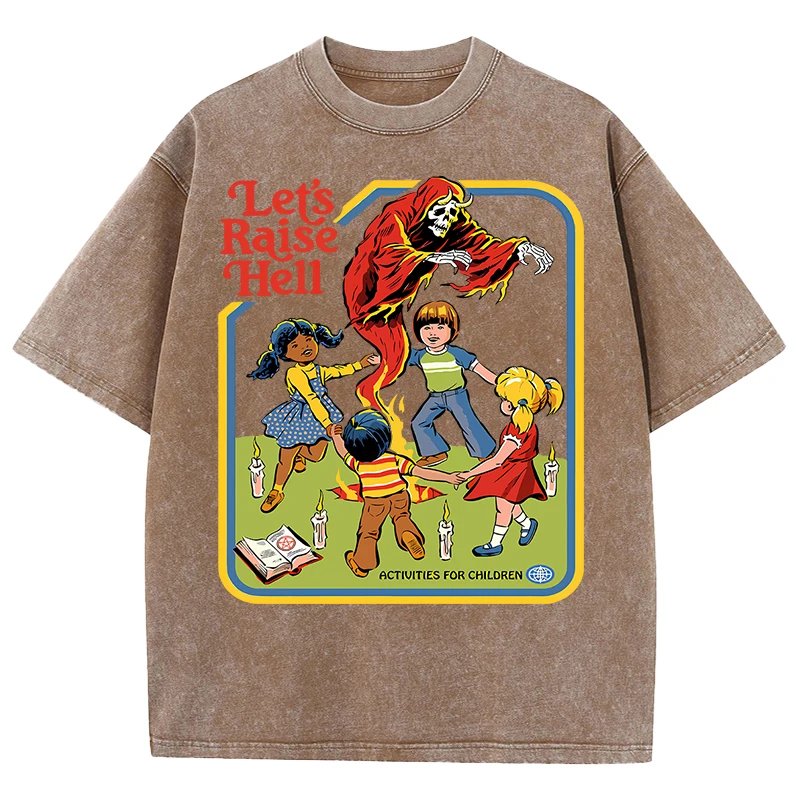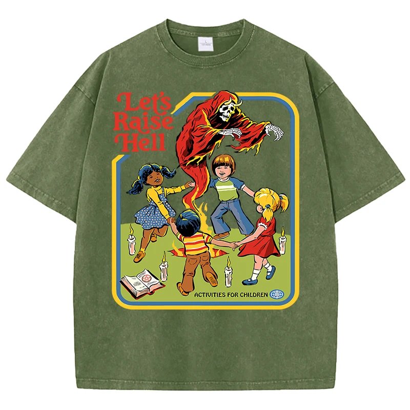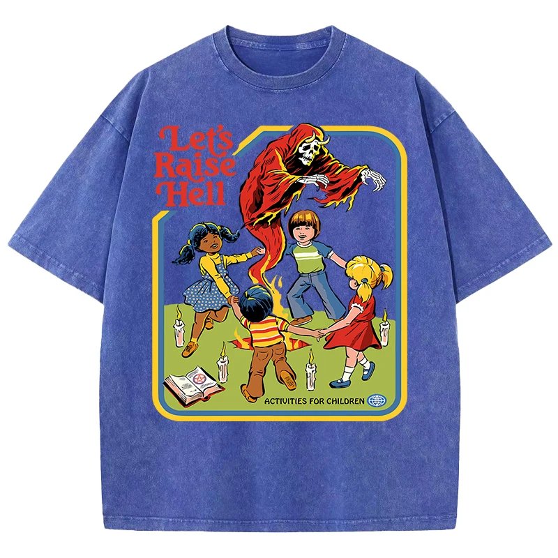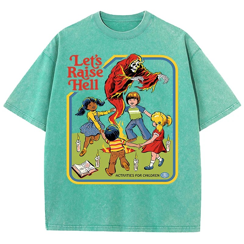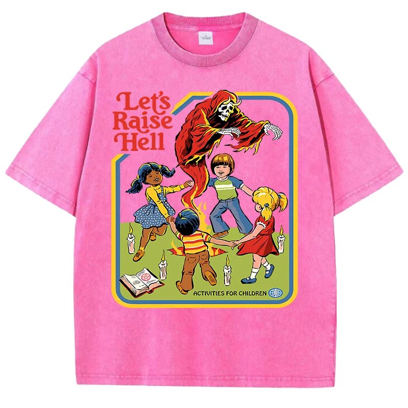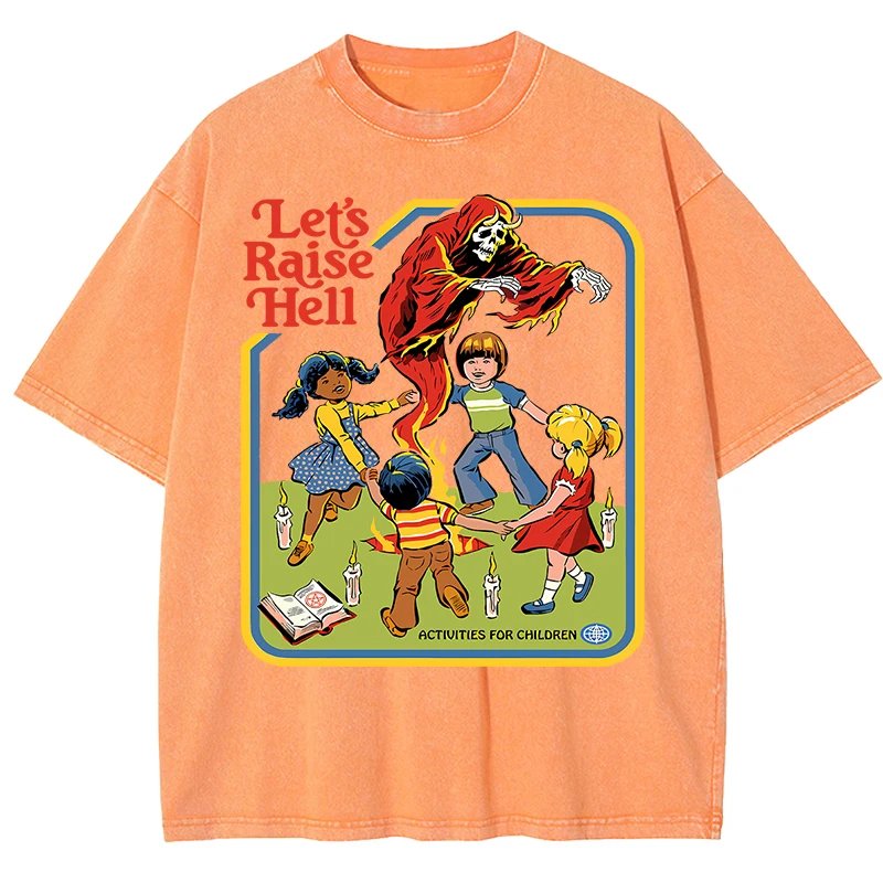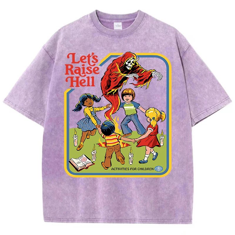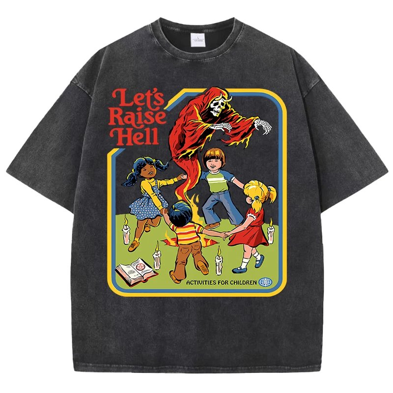 เสื้อยืดผ้าฝ้ายพิมพ์ลาย “Let’s Raise Hell” สไตล์วินเทจ สวมใส่สบาย ระบายอากาศดีเยี่ยม พร้อมสร้างลุคสุดเท่ไม่เหมือนใคร