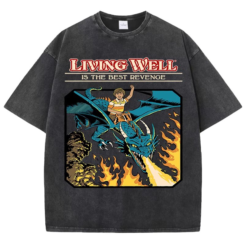 เสื้อยืดผ้าฝ้ายลายมังกรพ่นไฟสุดเท่ สไตล์วินเทจ ใส่สบาย ระบายอากาศดีเยี่ยม พร้อมสร้างลุคมีเอกลักษณ์โดดเด่นไม่เหมือนใคร