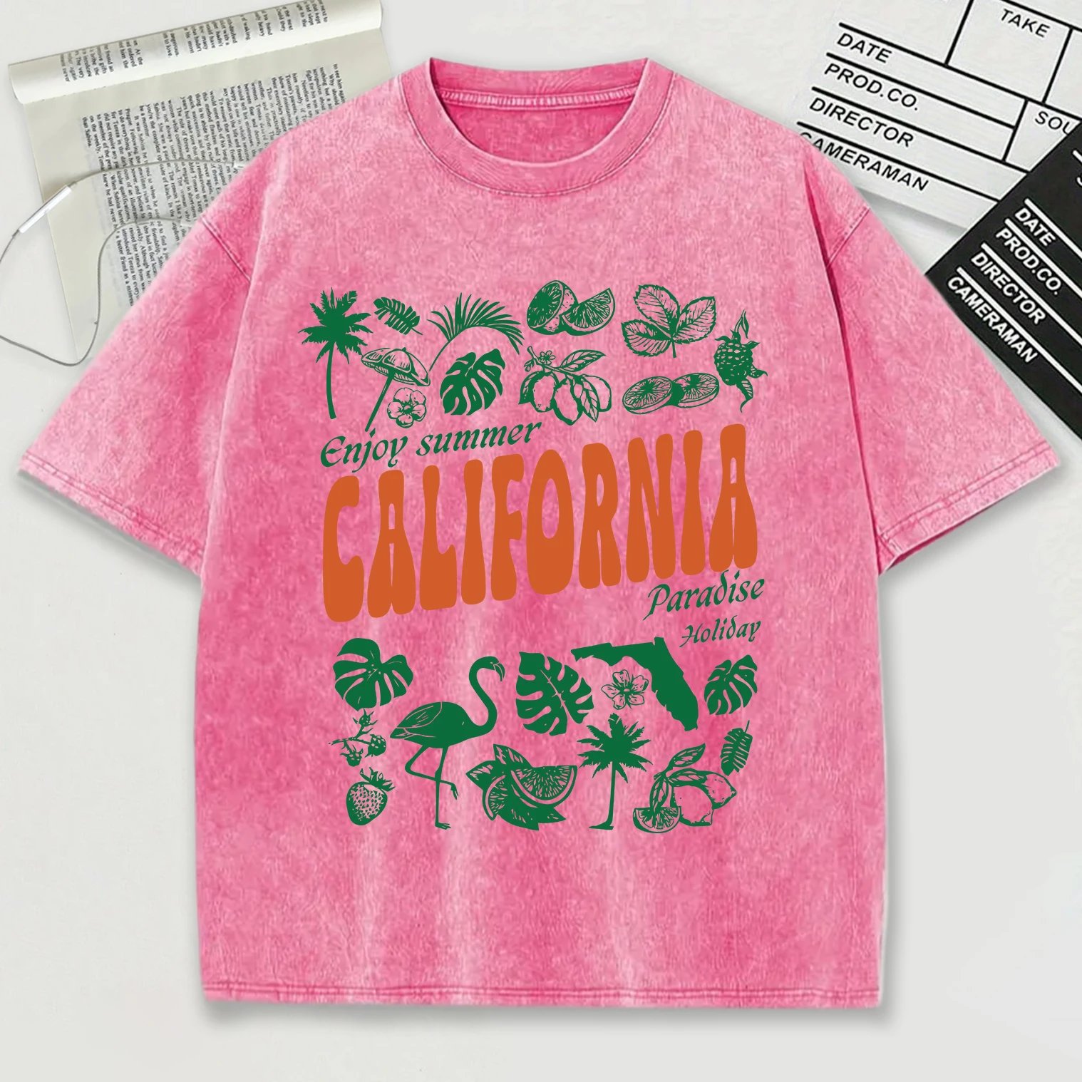 เสื้อยืดสไตล์วินเทจผ้าฝ้าย 100% พิมพ์ลาย “Enjoy Summer California” สุดชิลล์ สวมใส่สบาย ระบายอากาศดี เหมาะสำหรับผู้ที่รักความสดใสและสไตล์แคลิฟอร์เนีย