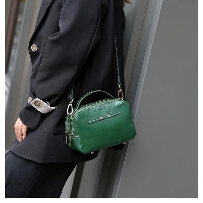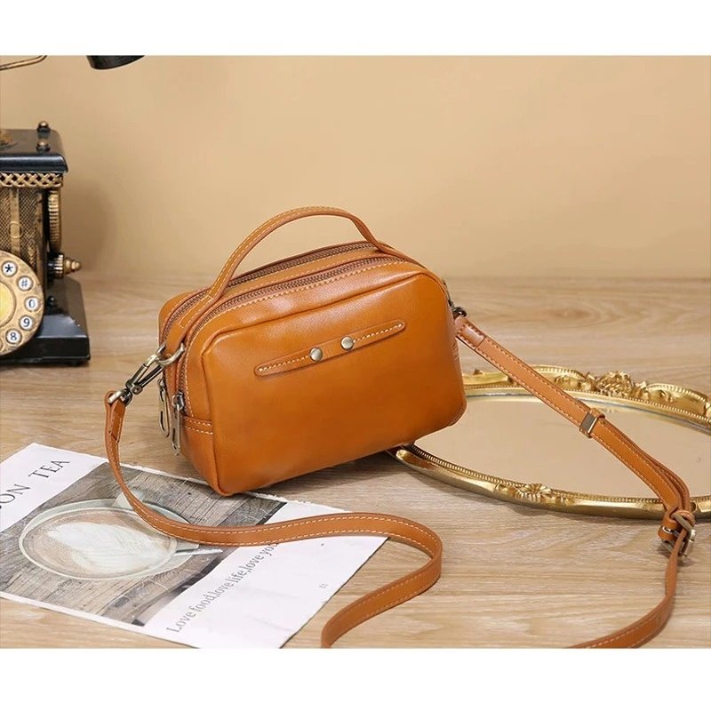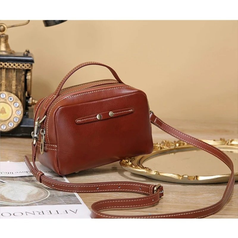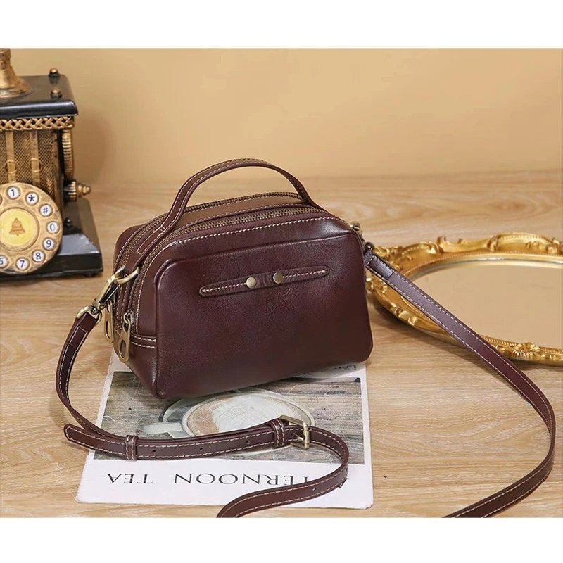 กระเป๋าสะพายข้างหนังวัวแท้ ดีไซน์แฟชั่น พร้อมซิป 2 ช่อง เพิ่มความสะดวก!