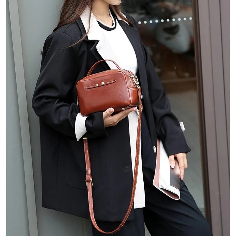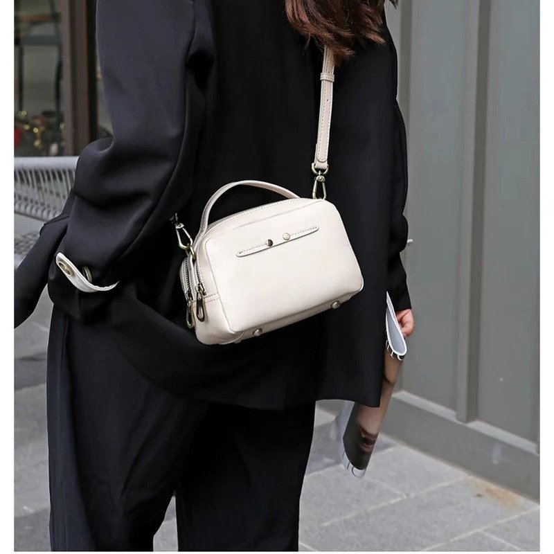กระเป๋าสะพายข้าง ZUEZAN ใบนี้ผลิตจากหนังวัวแท้ 100% คุณภาพพรีเมียม ให้สัมผัสที่นุ่มนวลและทนทานต่อการใช้งาน ดีไซน์ทรงกล่องที่ดูทันสมัยและใช้งานได้จริง ขนาดพอเหมาะ (21 x 15 x 9 ซม.) พร้อมซิปถึง 2 ช่อง ช่วยให้คุณจัดเก็บสิ่งของจำเป็นได้อย่างเป็นระเบียบและปลอดภัย ภายในมีช่องซิปเพิ่มเติมเพื่อความสะดวกในการแยกของใช้สำคัญ กระเป๋าใบนี้เหมาะสำหรับผู้หญิงที่มองหากระเป๋าที่ผสมผสานแฟชั่นเข้ากับการใช้งานจริงในชีวิตประจำวัน ไม่ว่าจะใช้ในงานปาร์ตี้หรือกิจกรรมอื่น ๆ ก็ลงตัว
