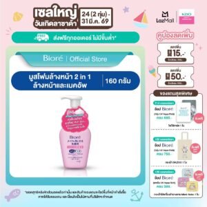 บิโอเร 2อิน1 เมคอัพ รีมูฟเวอร์ โฟม 160มล Biore 2 in 1 Makeup Remover Foam 160ML โฟมล้างเครื่องสำอาง